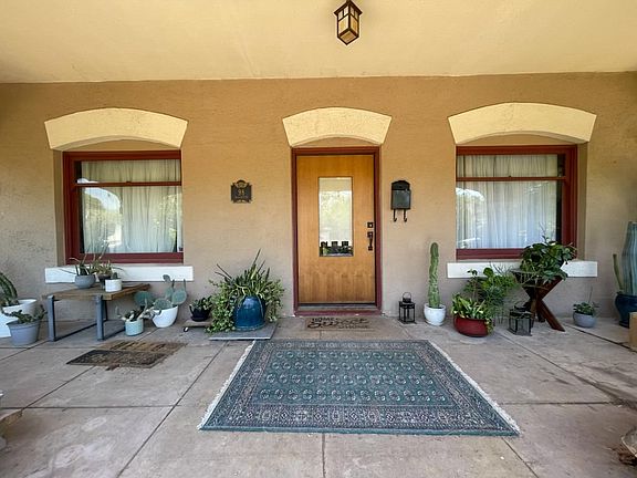 Kitchen has a 4-stool counter seating and gets delightful morning light. The outdoor space is a vibrant oasis of plant life, a breath of fresh air in the desert. Raised garden beds are already installed to live out your garden dreams.