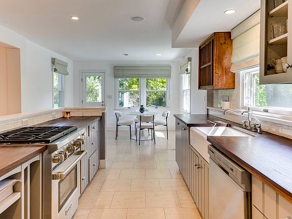 South of the highway in Sagaponack, at the end of a cul-de-sac you'll find a beautifully situated farmhouse on just over 2 acres. This house provides easy access to all the fall activities The East End has to offer! In the great room, you'll find a beautiful center room fireplace for cozy winter nights or use your pool house with wood burning stove for a quiet escape. With both first and second floor en suite options and 2 additional guest bedrooms this home has room for the whole family. A fantastic eat-in kitchen and direct access to the dining room perfect for holiday gatherings, a large great room with vaulted ceilings, and well-styled den with direct access to the patio finish off the main floor. The epitome of Sagaponack style and charm, this house is a must-see!