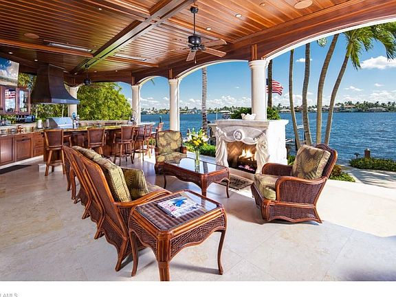 Dramatic long and wide water views from this exhilarating setting on Naples Bay! Masterfully constructed by the Williams Group, Inc. and meticulously maintained, the home is situated on an exceptionally large property, providing wonderful privacy from the road and abundant outdoor living areas and green space in the rear of the home. The home is exquisitely finished throughout. Multiple rooms of importance take insightful advantage of the waterfront vistas. First-floor master suite and adjacent office. The first-floor also features formal living and dining spaces, a well-appointed kitchen, and the casual great room, which, beyond the accordion-style sliding doors, opens to the significant covered outdoor living area. The second living level is comprised of 4 additional bedroom suites and a large entertainment area, which leads to an outdoor observation terrace overlooking the pool deck, fire pit area, tremendous dock system, and Naples Bay. The property is a yachtsmans dream with well-equipped dock facilities and easy access to the Gulf of Mexico and estuarine waterways. 4 garage bays. Close proximity to Old Naples! One of the most sought-after locations in Naples!