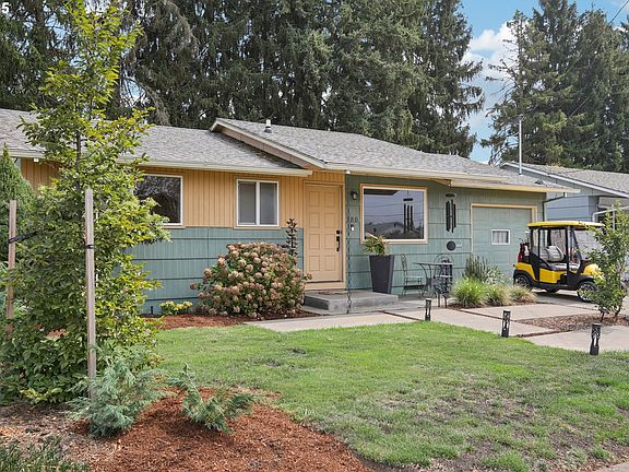 Come see your new home in Woodburn’s Senior Estates 55+ Golf and Country Club! This 2 bed, 1.5 bath, ranch-style house has been thoughtfully renovated to a modern open floor plan, perfect for those seeking lifestyle and convenience! The kitchen is well suited for chefs and includes custom, solid wood, floor to ceiling cabinetry, maximizing storage, gorgeous quartz countertops, tile backsplash and large island, a prime spot to sit enjoy a cup of coffee or glass of wine from the nearby custom built bar. The living room features a tiled fireplace with gas insert to relax and enjoy a cozy night on the couch. French doors open up to a beautifully landscaped back yard with a large, newly hardscaped, covered patio area, an inviting layout for outdoor dining, gardening & gathering. New cedar fencing creates privacy while enjoying the view and direct access to green space, ideal for dog lovers. The primary bedroom has a beautiful en-suite bathroom featuring tiled floors and wainscoting, a jacuzzi tub and Toto bidet toilet. The perfect retreat for relaxation. The 2nd powder bathroom is equally as beautiful, with tile floors and wainscoting as well as a pocket door leading to the main bath so guests need not pass through the master bedroom to access the shower. A large walk-in closet with stylish barn door located off the living room provides extra storage for games and crafts. A bonus storage room located in the back of the garage is ready for your gardening tools, exercise machine or pinball! Grab your golf cart and enjoy the amenities of the community, including an indoor pool and fitness center, golf course, club house and restaurant! Location is everything as this home is located only .4 miles from Legion Park, a favorite spot for strolls and outdoor recreation. For dining/shopping, you’ll appreciate the proximity of Woodburn Outlets, groceries & local restaurants, making errands and outings effortless. Medical care is easily accessible at Legacy Medical, .7 miles away!
