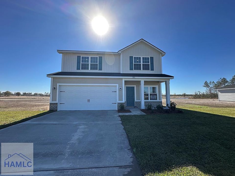 The Bagley plan in The Village at Sassafras offers 4 bedrooms, 2.5 bathrooms, and a flexible layout designed to fit your lifestyle—all on a spacious 0.53-acre homesite. Step into the inviting foyer with a clear view of the versatile flex room, perfect for a home office or second living area. The open-concept family room features a cozy electric fireplace and flows seamlessly into the kitchen, which includes a corner pantry and breakfast bar—great for casual meals and entertaining. Upstairs, three secondary bedrooms share a full bath, while the private primary suite boasts a garden tub, separate shower, and large walk-in closet. The upstairs laundry room adds everyday convenience. Artistic renderings are for visual reference only. Actual floor plans, features, and finishes may vary.