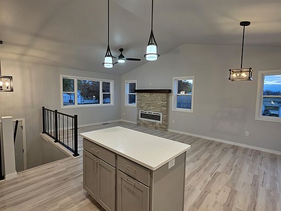 Stunning newly built 3-bedroom home, thoughtfully designed with an open-concept layout and vaulted ceilings that create a sense of space and light. Windows flood the interior with natural sunlight, while a welcoming stone fireplace anchors the living area with cozy charm. Sleek vertical cable railings add a contemporary flair. The kitchen features quartz countertops throughout, an island, and appliance package. A large undermount farmhouse sink, under-cabinet lighting, and a pantry complete the space. Enjoy meals in the sun-drenched dining room, perfectly positioned beside sliding glass doors that lead to a composite deck. The generous primary suite offers dual spacious closets. The main bathroom has double quartz vanities and ample linen storage. Close to schools, shopping and Hwy 41.