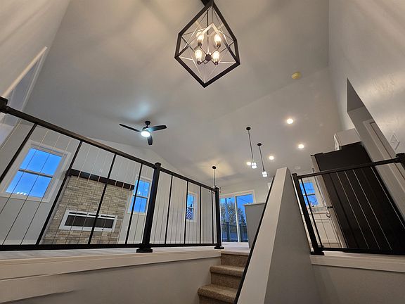 Quartz countertopsAppliance packageSleek vertical cable railingsGenerous primary suiteSun-drenched dining roomSliding glass doorsVaulted ceilings