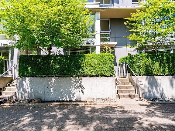 Welcome to this rarely available 2-bedroom, 2.5-bath townhouse in the exclusive Coopers Pointe community—offering the perfect blend of luxury, privacy, and vibrant waterfront living. Nestled directly across from Coopers Park, with False Creek, Science World, and a dog park right at your doorstep, this semi-waterfront residence offers an unmatched lifestyle. Enjoy your morning coffee or evening unwind on the spacious 105 SqFt private patio, surrounded by greenery and water views. Features include: Gourmet kitchen with granite countertops, breakfast bar, gas cooktop & stainless steel appliances. Functional floorplan with no wasted space. Parking #108 & #109. Storage #19. Open house, Friday, Oct 3, from 5:30 - 7 pm.