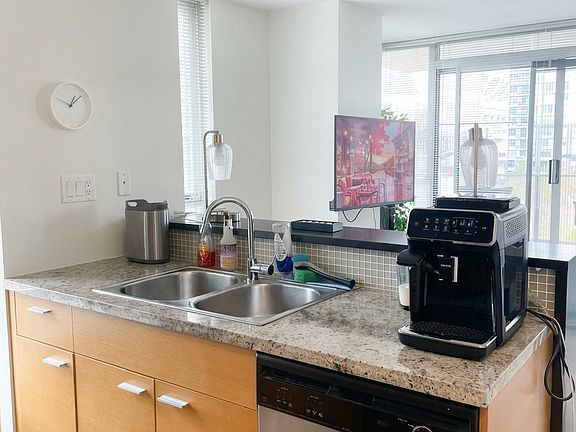 You get full access to the building's resort-style amenities: indoor pool, hot tub, sauna/steam, gym, bowling alley, theatre room, lounge spaces and concierge. Outside, you've got the seawall, dog park and parks literally at your door, and an easy walk to Yaletown, SkyTrain, BC Place, Rogers Arena, Costco and Parq.