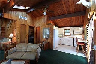 Fish On River, Boat On Lake. Great Riverfront Cabin W/Sand Beach W/Permanent Dock & Shore Station On Woodcliff Lake- Directly Across Road! Very Well Cared For & Updated 2 Bdrm Log Cabin W/Year Round Heating & A/C, On Demand Water Heater, Master W/Full Bathroom, Updated Appliances, Plumbing For Washer/Dryer, Tongue & Groove Walls W/Cathedral Ceiling. Great Value!