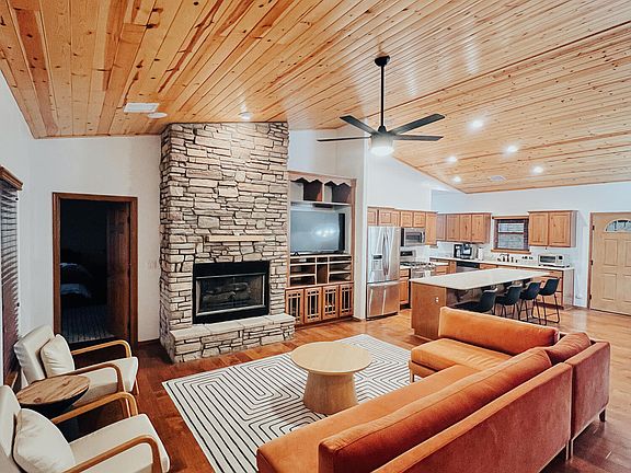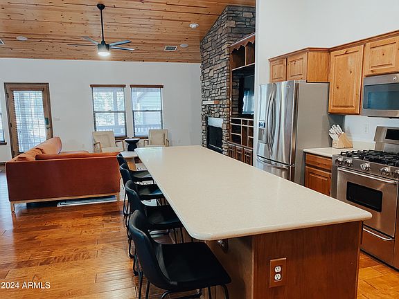 Welcome to your dream home! This captivating 2-story residence features 4 bedrooms and 3.5 bathrooms, offering spacious living nestled amidst the enchanting pines of Show Low. This home is designed for both comfort and style. Step inside to discover vaulted ceilings, real wood floors and an exquisite stone fireplace adding warmth and ambiance to the living space. Separate mother-in-law suite provides versatility, with a separate kitchen and washer/dryer, and is wheelchair accessible ensuring convenience for all. The kitchen boasts granite countertops, an oversized middle island featuring extra seating, modern appliances, walk-in pantry, and lots of cabinet storage, making it a chef's delight. The main bathroom is featuring a shower and a jet tub, complemented by two main sinks. The expansive walk-in closet provides organization and convenience.