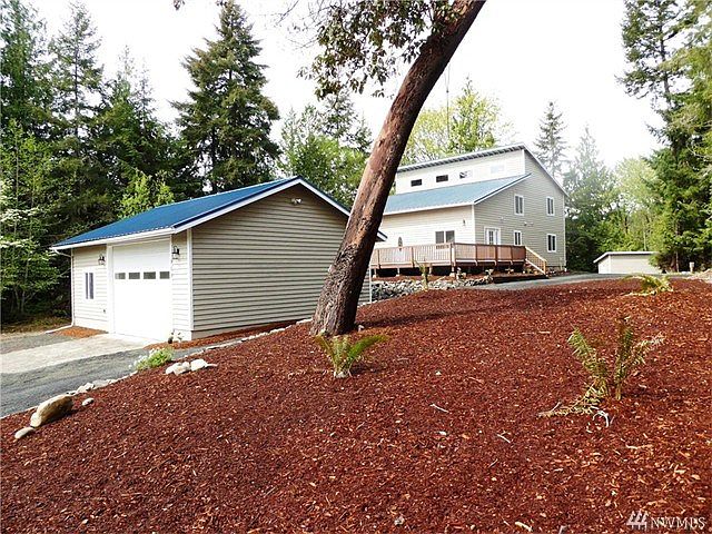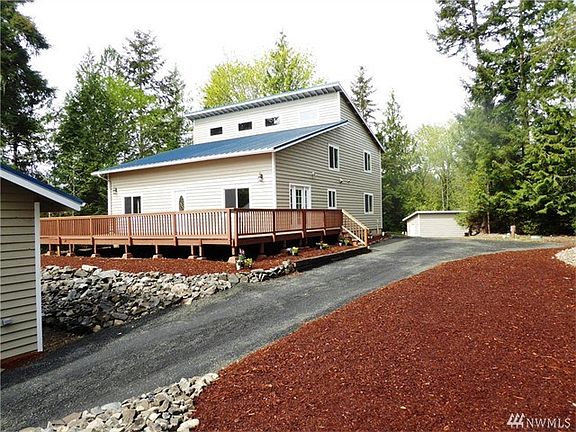 This home is better than new with complete make over, 3+ bdr, 2.5 bth located on a waterfront lot that has it all, including lrg detached 2 car+ gar/shop, a very unique home with great wood interior wood construction and plenty of added upgrades throughout including a huge open kitchen/dinning/living room with huge vaulted ceiling with center bar for great entertaining. Sit at your fire pit & enjoy the private setting overlooking the cove or walk across the street to the community beach access.