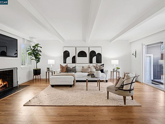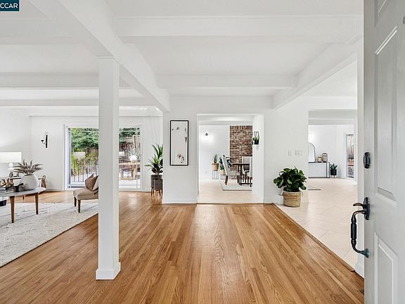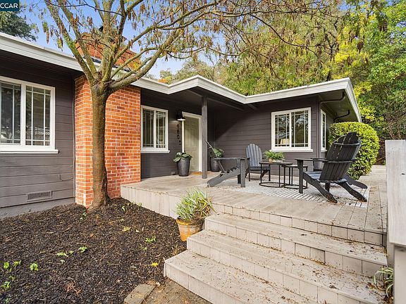 Set in a prime Lafayette location, this inviting single-story home offers comfort, style, and convenience. Step inside to an open concept layout with hardwood floors throughout, offering a warm and cohesive feel. An updated kitchen includes quartz countertops, stainless steel appliances, and new herringbone-patterned tile flooring. The spacious dining area sits beside a striking floor-to-ceiling brick fireplace, creating a focal point for everyday living and gatherings. Fresh interior and exterior paint enhance the property’s clean, move-in-ready appeal. Multiple decks provide versatile spaces for entertaining or relaxing outdoors, surrounded by mature trees. Close to town, trails, and award-winning schools, this home combines thoughtful updates with an ideal location.