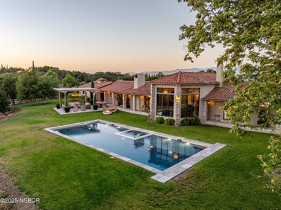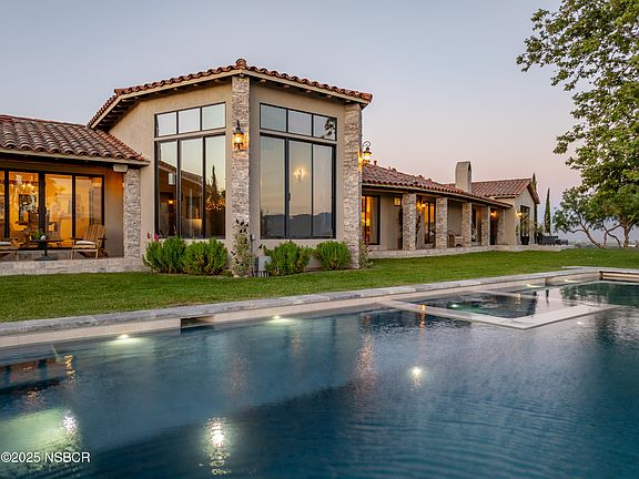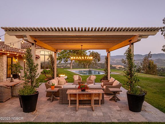 Breathtaking views and luxury living await in this 5-bed, 4.5-bath Sophisticated Ranch Estate in prestigious Regency Hills. Set on 8.8 private acres, this recently updated stunning home offers panoramic Santa Ynez Valley and mountain views from nearly every room -- truly one of a kind.Step through the front door into a grand living room featuring soaring wood-beamed ceilings, a cozy fireplace, and walls of glass that frame even more stunning vistas. Wide-plank wood floors flow seamlessly throughout, leading into the chef's kitchen--complete with a butler's pantry and tall wine cooler. The kitchen opens to a warm fireside dining area and a comfortable family room, creating the ultimate Great Room experience with effortless access to the outdoor living and dining spaces. The very private primary suite is a serene retreat with a grand fireplace, disappearing glass doors that open to a magical vista, and a spa-inspired bath with a soaking tub under arched windows filling the sanctuary with natural light. .