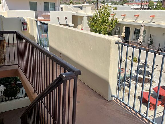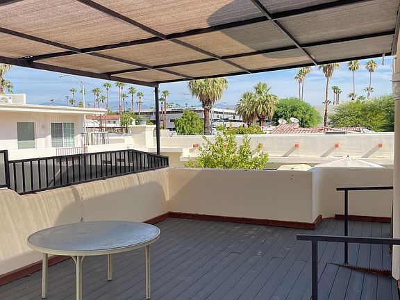 This very bright, light and airy second floor apartment has just been fully remodeled and upgraded! We've painted the entire apartment, added new carpeting, refinished the cabinetry, installed all new LED Energy Efficient lighting, had the HVAC system upgraded, built a HUGE pergola that covers the HUGE deck that has unobstructed INCREDIBLE views of Mt San Jacinto and just finished installing all new window treatments, whew that's a lot of upgrades!
