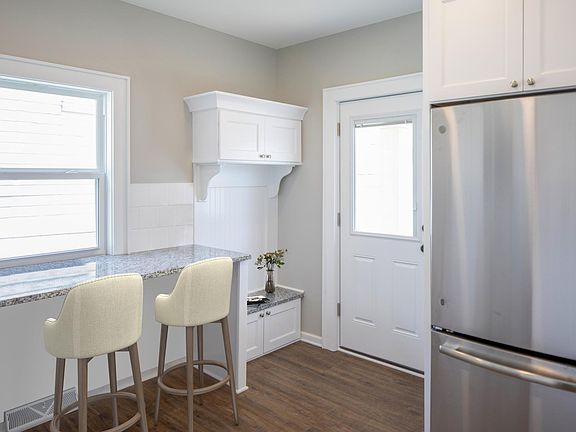 Stainless steel appliancesDecorative fireplacePlank floorsQuartz countertops