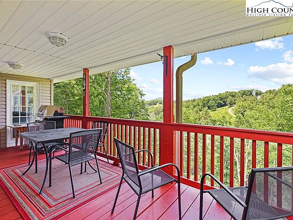 NEW RIVER FRONTAGE w/ LONG-RANGE MTN VIEW!! This well-built home is set on a ridge overlooking the river and boasts both front and back covered porches with year-round views. Bright and airy with a large living room and multiple living spaces, this 3 bedroom / 2.5 bath home also features huge walk-in closets, plenty of kitchen storage and counter space, as well as a window-filled sun room overlooking the New River and Mt. Jefferson. The lowest level has built-in wine cabinets, an additional bedroom, and a third bath roughed in and ready to finish as you wish. The basement also has a walkout door to the fire pit and a second driveway, providing the possibility to create a separate living area. This home includes strong I-beam supports and a superior wall system for maintaining a comfortable indoor temperature year-round. Temperature is controlled throughout the home with dual HVAC units and a gas fireplace. The possibility exists of finishing a path to access the river directly from the property. Located less than 15 minutes from the Blue Ridge Parkway and downtown West Jefferson, this home would make a great single-family home or second home for anyone who loves hiking and river activities! Can be sold furnished or unfurnished.