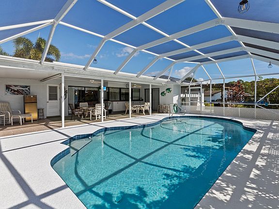 THIS IS THE ONE YOU BEEN LOOKING FOR!!..... PARADISE HOME?? OR INCOME PROPERTY!!Beautiful CBS, Heated Pool Home with New Roof (Nov 2022). This 2/2/2 Boasts a lot of great features, and updates. Super sized Master bedroom with dual sinks and walk in closet, Separate Cabana bath, New laminate flooring, Fully furnished w/ TV's for instant living... Outside features include Large extended Driveway for RV's, Boats, Etc. Extended 2 car garage, Completely rescreened Pool enclosure, Covered Gas grill area, Security Lights, beautiful landscaping, and much more. Home sits just down the street from the River park for Fishing Etc. You will want to look at this one today! Call me for your private showing. Furniture can be removed by request