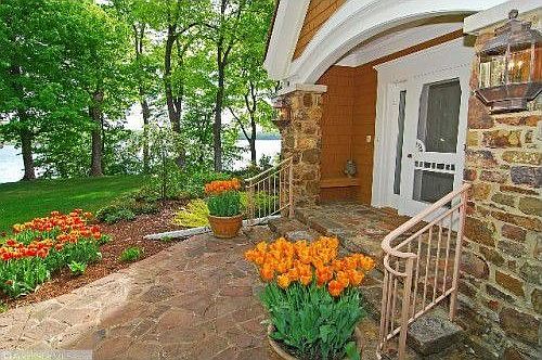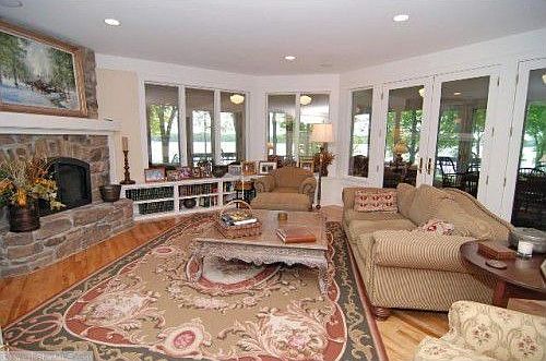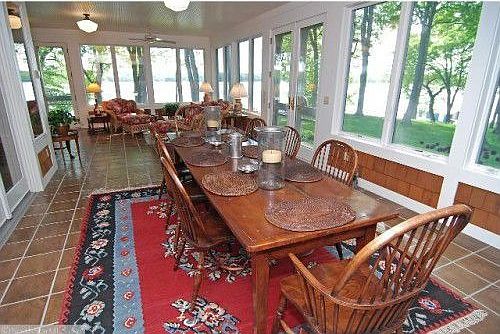Charming English cottage tucked away on 2 private acres with 135 feet of East facing lakeshore on Maxwell Bay. Over 6,000 sq. ft., 4 BR/6BA, top of the line appliances, hardwood floors, bead board, heated old fashioned porch and enchanting English gardens.
