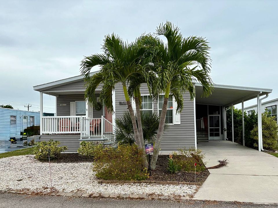 Your Coastal Escape Awaits - Elegant 3-Bedroom Home Just 10 Years Young! "Florida Living at Its Finest Welcome to your Florida dream home - a beautifully appointed 2015 three-bedroom residence that offers the perfect blend of comfort, charm, and space for both everyday living and entertaining guests. If you're seeking a fresh Florida lifestyle with room to host family and friends, this is the home for you. This spacious home features three large bedrooms and two full bathrooms, thoughtfully designed to accommodate queen and king-sized beds, dressers, and furnishings with ease. The master suite includes a walk-in closet and an ensuite bath with a double vanity, two sinks, a step-in shower, and a linen closet. The two guest bedrooms also offer one with a walk-in closet and one with double size plus ample space for furniture, while the guest bath includes a tub/shower combination, vanity, and flush. Step outside and enjoy two inviting outdoor areas - a charming farmers porch with white railing, accented by salmon-colored chairs and a matching front door, and a screened-in patio complete with table and chairs, perfect for BBQs and relaxing evenings. The landscaping is currently being upgraded with new sod replacing shells, creating a picture-perfect setting that enhances the curb appeal. Inside, you'll find elegant touches throughout, including baseboard trim, chair rails, and crown molding that give the home a polished, refined feel. The living room easily accommodates a variety of furnishings, allowing you to arrange the space to suit your style. The dining area comfortably fits a table for six plus a credenza, making it ideal for hosting meals and gatherings. The galley kitchen is fully equipped with all appliances, including a five-burner stove, and features an inside laundry closet with full-size washer and dryer. The combination of carpeting and laminate flooring adds warmth and durability, while updated double-pane, tilt-sash windows provide energy efficiency and easy cleaning. Additional features include a spacious storage shed perfect for a workshop, bikes, beach toys, and more. The covered carport fits two vehicles and adds convenience and protection from the elements. This home spans 24 by 52 feet and comes unfurnished, except for the outdoor furnishings, giving you a blank canvas to personalize and make your own. Three-bedroom homes like this are a rare find, especially at such a fantastic offering. Don't miss your chance to own this beautiful property and start living your Florida dream. Take advantage of many appealing amenities to stay active In Bay Indies with miles of walking and biking trails, three heated pools with hot tubs, tennis, pickleball, bocce, shuffleboard, and a kayak launch and storage. There are a number of clubs, card games, bingo, trivia, concerts, organized dinners and activities if you prefer more tranquil living. Venice is just a few miles away with cultural events, concerts, fishing, boating, golf and beautiful beaches plus search for shark teeth. Venice is known for many restaurants, shopping and near 3 airports. A casino in Tampa and the Tiger Woods Pop Stroke 2 course putting greens in Sarasota are a must. All listing information given to us is considered appropriate and reliable but should be independently verified through personal inspection by appropriate professionals. Home must be maintained to the Community Prospectus. The lot rent is determined by the Community office and covers all amenities offered including property taxes and lawn maintenance.