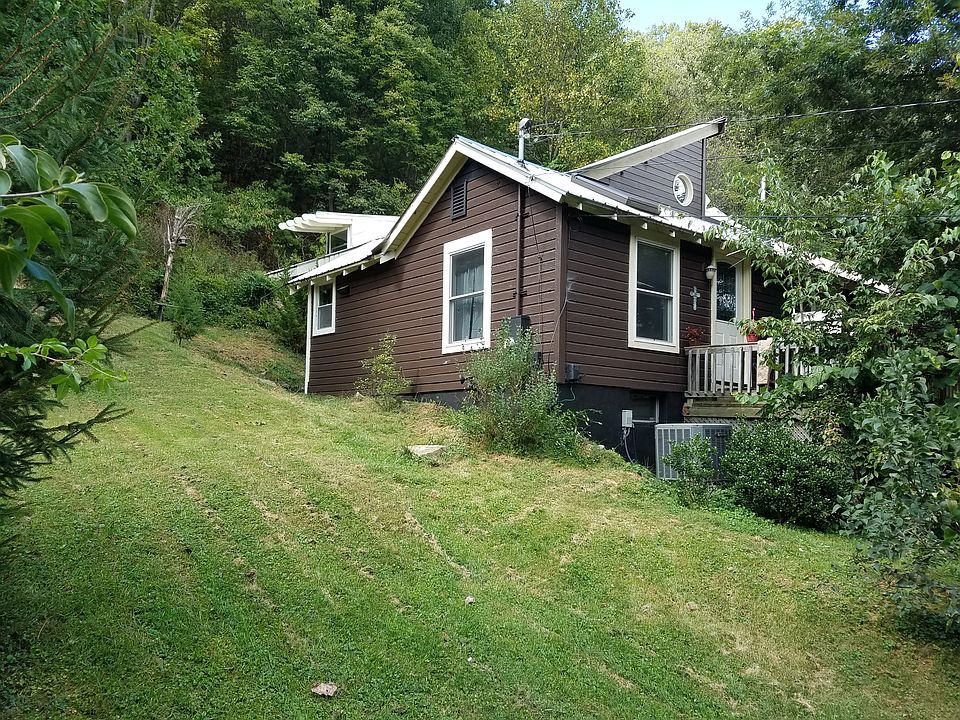 3 homes (three), multiple lots, 2.9 acres, new additions. Main house is a Charming Bungalow with a creek running through property. Remodeled throughout. Updated kitchen with newer appliances and stack washer-dryer. Heat pump and wood stove. Loft and porches to enjoy the sounds of nature.