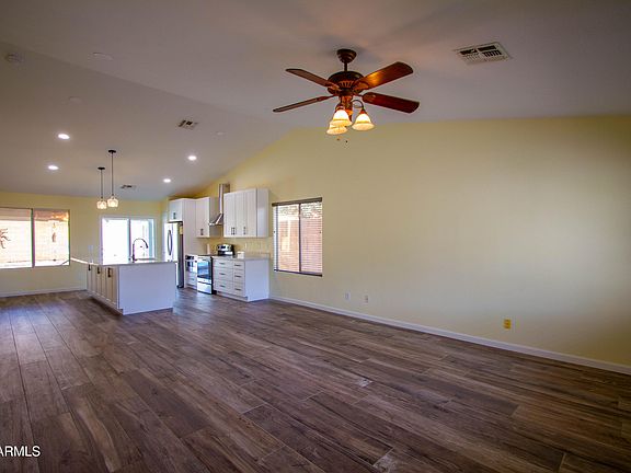 Beautiful 4-bedroom, 2-bath single-story home in the desirable Arroyo Verde community of Apache Junction. This move-in ready residence features an open layout with vaulted ceilings, new vinyl flooring, and quartz countertops. The spacious kitchen includes a large island and modern electric appliances. Enjoy a private backyard oasis with a sparkling pool, synthetic grass, and an RV gate—perfect for entertaining. Owned solar panels keep energy costs low. Conveniently located near Desert Vista Elementary and Cactus Canyon Junior High. No HOA! A perfect blend of comfort, efficiency, and Arizona outdoor living.