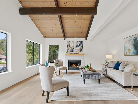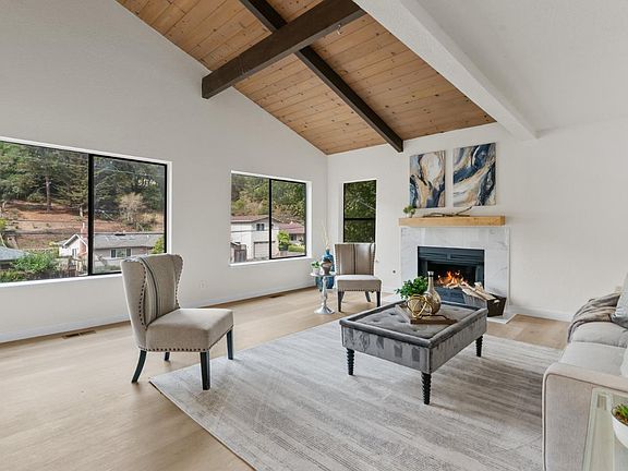 Spacious, Newly updated 3 bedroom 2.5 bath home + OFFICE/bonus room on nearly 1/2 acre of land with pretty views of nature in a fantastic location! Open floorplan & airy vaulted ceilings. Kitchen features New: stainless appliances, white quartz counters and a peninsula for gatherings. Ground floor primary bedroom with walk in closet is ample and overlooks the park like backyard! Primary bath showcases New: barn door and stunning dual sink vanity with quartz counter! All new wood laminate flooring and luxurious new patterned carpet for the bedrooms. Upstairs there are 2 more large bedrooms + a bonus 16x12 ft office/play room and a designer guest bath with new fluted vanity and new fixtures. New: roof in May 2025, int/ext paint, baseboards, light and plumbing fixtures, new landscape,2 car garage, inside laundry, dual paned windows and lots more! Cozy fireplace! Huge front yard for playing and swinging under the Oak tree. 2 car garage + parking for oversized vehicle. Expansive rear yard has a mostly flat 48x25 ft area with paver patio + lots more useable area for get togethers and fun. Walk up the hill and create a private sitting area with views. The home is roomy, attractive, renewed and in a wonderful neighborhood! Aptos schools, dining, Seascape golf and beach! Super clean!