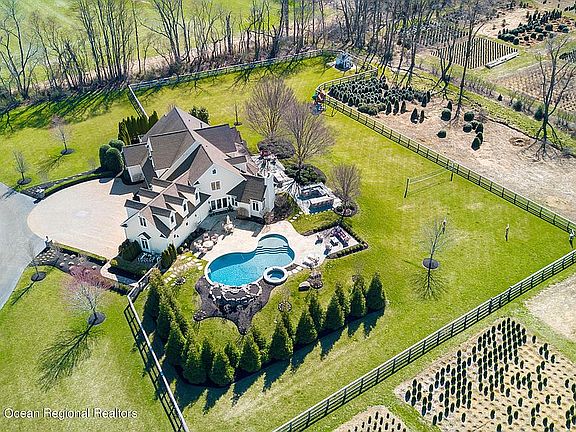 Enter one of Millstone Twp hidden gems. The craftmanship, smart technology and design of this North facing home is absolutely breathtaking! This country colonial is set beautifully on over 5 acres with views of beautiful horses & farmland. This lovely home boasts 2 master suites and built with exquisite taste. Features include gleaming maple floors throughout, custom cabinetry, grand doorways and decorative moldings, double glazed windows throughout allow you to appreciate your gorgeous views. Gourmet kitchen with Wolf stove and Sub Zero appliances with a butler's pantry including your very own built in Miele coffee machine. You're going to love the 10ft basement ceilings with a full gym, full bath plus an amazing theater and your very own Humidor for the very best in cigars.