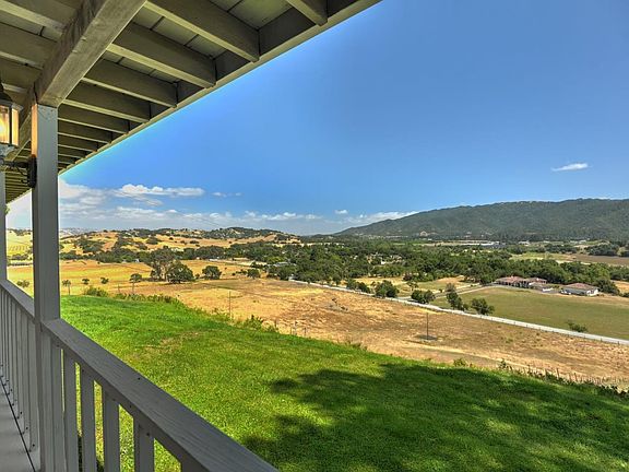 Unbelievably spectacular more than panoramic views! Burchell Valley, the city lights of Gilroy, the hills and mountains & pond behind all come to life from the vantage point enjoyed by this lovely home. Gated entry with complete privacy from surrounding cattle ranch for this custom home being sold by it's original owners. Extensive decking allows for entertaining while enjoying the views & evening breeze. Home has been very well maintained by the owners. Newer exterior paint, laminate flooring & plantation shutters. Large eat in kitchen with newer dishwasher. Kitchen refrigerator included. Master suite has a private deck. TV & sound system in family room included, along with cabinet in lower bedroom containing the controls for system, if desired by Buyer. Home has private well with 5000 gallon water storage. The almost 3 acres has vineyard potential. Additional flat ground at road level may have additional uses. Great performing free WIFI- ask for details. Only 6 minutes from town!