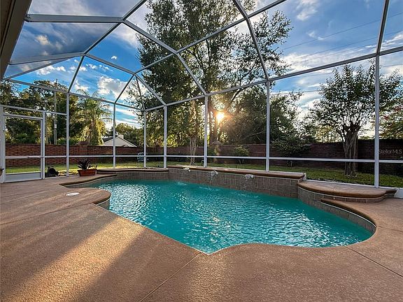 Sparkling private poolCharming round-edge drywall cornersSkylit sunroomNew appliancesAbundant storageElegant crown moldingSpacious primary suite