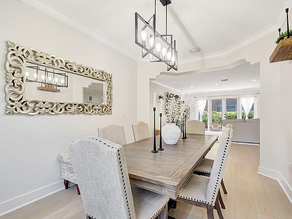 Situated in the luxury community of Olympia, the home offers resort-style amenities, including a massive pool, kid's splash area, private cabanas, a great room for events, a gym, and an indoor basketball court. Outdoor amenities include basketball, tennis, pickleball, volleyball courts, and a large playground. The HOA covers common area maintenance, high-speed internet, four guard-managed entrances, and rover patrols.