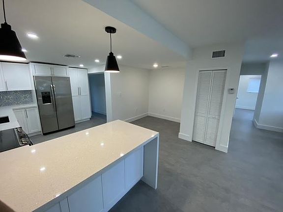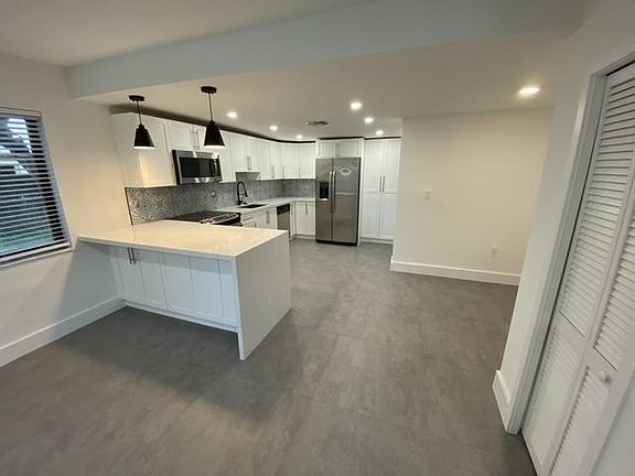 Home has been completely remodeled including both bathrooms, kitchen (with quartz countertops, stainless steel appliances, and wood cabinets) hurricane impact windows, recessed LED lighting, and 30" Italian porcelain tile throughout home. Master bedroom is very spacious with large walk-in closet.
