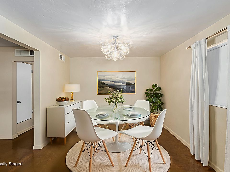 Beautifully remodeled 3 bed, 2 bath! Ideally located across from Sunnyslope Elementary School and just moments from the scenic North Mountain hiking trails and parks, this home offers both convenience and natural beauty. Step inside to discover a bright, modern interior featuring stained concrete flooring throughout and updated bathrooms with stylish fixtures and tiled tubs. The kitchen boasts granite countertops and sleek black appliances, perfect for all your culinary needs. Additional highlights include wood shutters, a versatile laundry/craft room, and covered off-street parking.