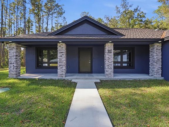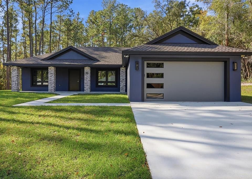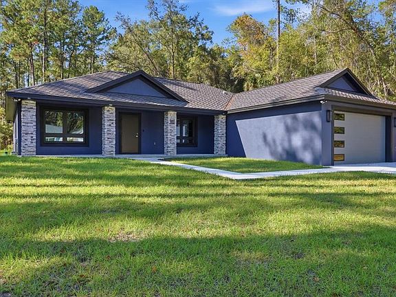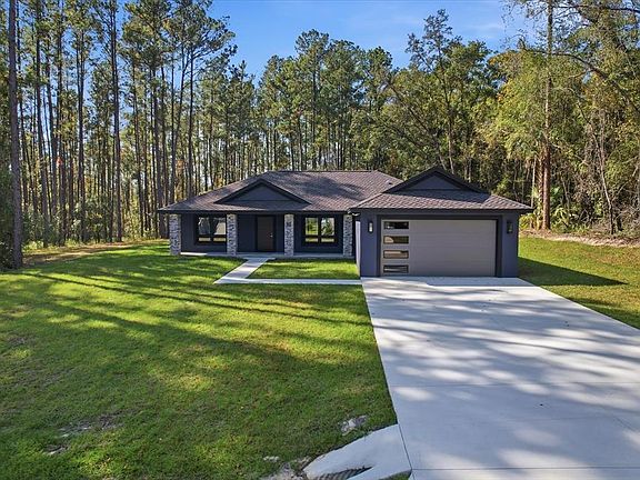 ONE-OF-A-KIND — Packed With Premium Upgrades You Won’t Find Anywhere Else! This home is loaded with high-end features including presidential shingles, gas tankless water heater, smooth-finish walls, solid core doors, interior wall insulation, overhead plumbing (no slab leaks!), attic storage with pull-down stairs, epoxy-coated garage floor & porches (photos coming soon), expanded driveway with culvert, stone column accents, screened rear porch, gas flame sconce lights, exterior downlighting in soffits, pre-wired exterior security cameras, upgraded appliance package, master shower enhancements, and so much more. To top it off, you’ll love the cozy, quiet backyard with NO future homes behind it, rare and hard to find! Welcome Home Step into your brand-new Citrus Springs home, where quality craftsmanship meets modern comfort. Built with care by Empire Construction, this newly completed 3-bedroom, 2-bath residence stands out with its long list of upgrades, contemporary styling, and energy-efficient construction. Tall ceilings and smooth-finished walls create an open, airy feel as soon as you walk through the door. The spacious main living area flows seamlessly into the kitchen and dining room, making it perfect for hosting friends or enjoying peaceful evenings at home. Modern Kitchen & Living The kitchen features beautiful granite countertops, soft-close cabinetry, upgraded hardware, contemporary lighting, and premium appliances. Durable floating luxury vinyl plank flooring carries throughout the entire home, adding a warm and cohesive look while remaining easy to maintain. Natural light fills the space through energy-efficient windows and a wide sliding glass door that leads to the screened back porch — the perfect spot for morning coffee, grilling, or relaxing in the tranquil, private backyard. Owner’s Suite The owner’s suite is thoughtfully positioned for privacy and includes stylish ceiling details, dual sinks, upgraded tile work, and a luxurious walk-in shower with premium finishes. Behind the Scenes - Built for Longevity This home is engineered to last with features not found in typical new builds: • Upgraded wall and ceiling insulation for lower utility costs • Overhead PEX plumbing to eliminate the risk of slab leaks • Underground electrical service for a clean exterior look • Meter/main combo panel for easy future expansions • Solid core interior doors for soundproofing and quality feel • Attic storage with built-in stairs Exterior Appeal The classic front porch and stone-accented columns make a strong first impression. The oversized, epoxy-coated garage includes a side access door for convenience. Exterior soffit downlighting and gas flame sconce lights add warmth and curb appeal, especially in the evenings. Perfectly Located You’re just minutes from local rivers, springs, parks, shopping, and newly developing retail areas, giving you space to breathe without being far from everyday essentials. Ready for You If you’re seeking something truly unique, beautifully built, and loaded with upgrades, this home stands in a class of its own.