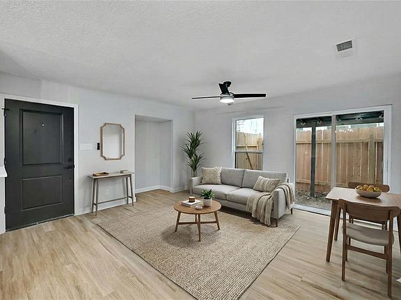 Freshly remodeled and ready to call home! This unit has been updated throughout with new flooring, new windows, fresh paint, and new interior doors and trim. The kitchen looks great with brand new cabinets, quartz countertops, a new bar top, tile backsplash, and a full stainless appliance package. Both bathrooms have been redone with new vanities, custom-tiled shower surrounds with shampoo niches, updated fixtures, and new toilets. You'll also find recessed lighting, new ceiling fans, updated switches/outlets, and upgraded hardware all the way through even a new front door and new sliding door that leads out to the backyard. Private parking included. A clean, modern space that feels brand new in a convenient location!