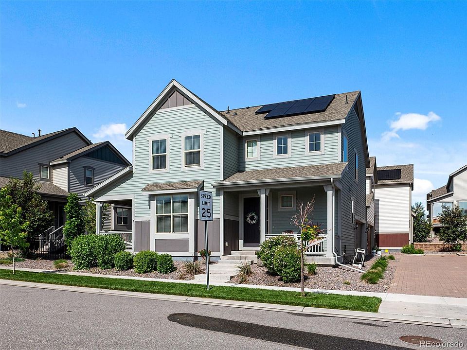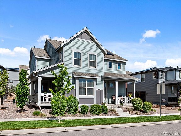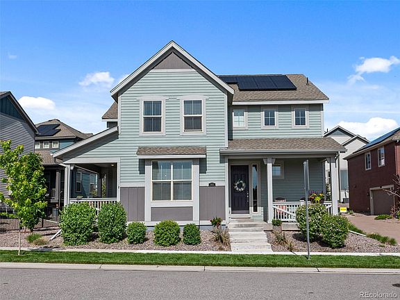 Welcome to this beautiful newer build, street facing home in Sterling Ranch! The home has been impeccably maintained and offers three spacious bedrooms plus a loft area and two and a half bathrooms. Enjoy an open floor plan that is great for entertaining, wood look tile flooring throughout the main level, a large kitchen island with granite countertops and bar seating, stainless steel appliances including a gas range, a pantry, and a roomy patio off of the dining area for easy indoor and outdoor living day or night. The loft is the perfect office area or space to relax in the evenings. The primary bathroom also offers upgraded countertops. Conveniently located upstairs is the laundry room. This is the perfect home for low maintenance living, plus it offers smart home features. Be sure to check out the Sterling Center, home to Grist Brewing and Atlas Coffee. The 4,900 square foot clubhouse includes a great hall with catering kitchen, fitness center, and pool with 2 outdoor pavilions. It is also only steps from the future Burns Regional Park. No need to wait for a new home to be completed and window coverings and all appliances are already installed!