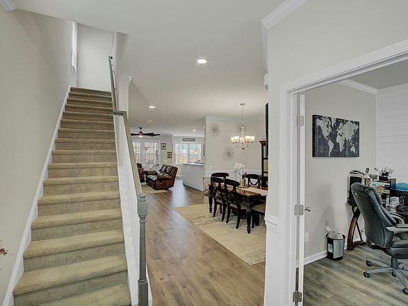 Welcome to 9803 Boxelder Ct in the beautiful subdivision of Coosaw Preserve. This beautifully maintained home has so much to offer. From first pulling up you will notice the lush & inviting landscaping that welcomes you to the home. Upon entering you will find tall ceilings, a partially open stairway and a gorgeous office/flex space complete with custom shiplap wall and glass paned french doors. Walking through the first floor you will see beautiful wainscoting throughout the dining space, and shiplap in the living rooms as well as an accent to the bar/island. The concept flow is breathtaking as the spaces have been meticulously maintained. In the kitchen you will find large cabinets, granite countertops, recess lighting, gas range, subway tile, and a large pantry. The first floor