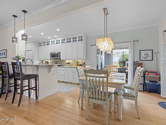 Outdoor living shines on the spacious deck, ideal for dining and taking in nightly color-washed sunsets. An exterior cargo lift provides convenient access to all levels, as well as the safety of a certified ''Fortified'' roof placed in 2020, and a whole-house generator offers year-round peace of mind. The lower level includes rear entry garage parking, and a finished multiple purpose area with over 1300 square feet-an excellent workshop, fitness room, or classic ''man cave.'' Enjoy the best of both worlds here: serene sound front living with quick, deeded access through the sister community of Dolphin Ridge- with the prettiest beach access that Emerald Isle has to offer.