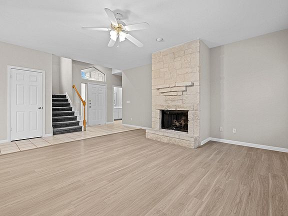 Beautiful stone 2 level townhome, exceptionally maintained with luxury vinyl plank & tile flooring throughout and fresh neutral paint. Unit has 3 beds/3 baths with wood/gas burning fireplace, 2 car garage and spacious, covered patio & private fenced backyard. 1 bed and bath down. Spacious primary suite with walk in closet and double vanity. Washer and dryer included and 2 AC systems/thermostats upstairs & downstairs. Enter through scenic courtyard or garage. RRISD, convenient to toll roads, shopping & major employers. North Forest neighborhood park, Springwoods pool & tennis courts conveniently located across street. Available for an immediate move in and pets welcome.