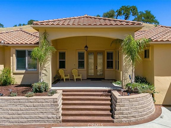 Lake Nacimiento's Mediterranean Estate Discover timeless elegance at 9805 Steelhead Rd--a private one-acre retreat near the shores of Lake Nacimiento. This beautifully designed estate features 4 spacious bedrooms and 3.5 baths, with hand-laid travertine floors, arched doorways, soaring ceilings, and rich cherry cabinetry throughout. The gourmet kitchen boasts an oversized granite island, premium stainless appliances, double ovens, and custom cabinetry, flowing into a formal dining room and an open great room perfect for entertaining. The primary suite offers a spa-like escape with dual vanities, a walk-in shower, and a deep Jacuzzi tub. Outdoors, enjoy stamped concrete walkways, lush landscaping, and panoramic views of rolling hills. A covered patio provides year-round enjoyment, and the elevated lot offers potential for a guest house or detached ADU--ideal multigenerational living. A rare blend of luxury, comfort, and possibility in a spectacular lakeside setting.