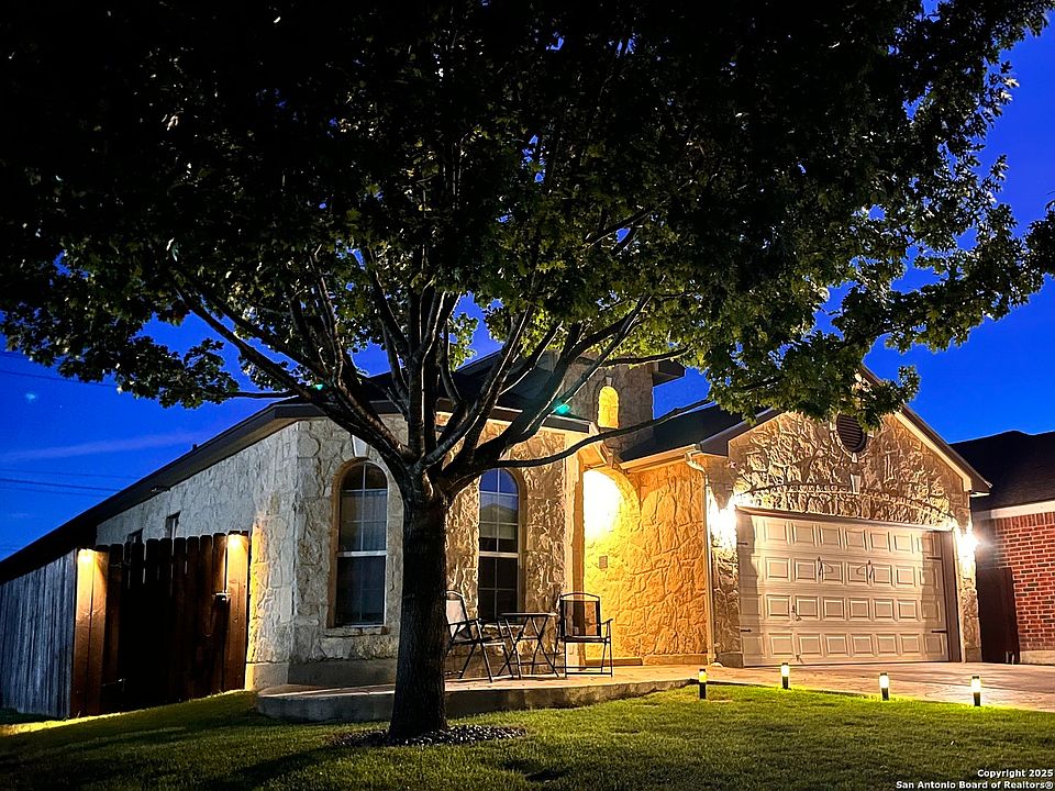 Closing Cost Assistance/Rate Buydown & Price Improvement! Welcome to this beautifully upgraded One Story home with 4-bedroom, 3-bath located in one of the most desirable areas of Helotes, Texas! Step inside to discover high ceilings, an open concept layout, and a split floor plan that provides great privacy. The front bedroom makes an ideal home office or study, perfect for remote work or quiet productivity. Enjoy the luxury of wood and tile flooring throughout-no carpet! The main living space features a built-in theater-grade sound system, 100-inch projection screen, and overhead surround sound in the living, dining, and kitchen areas-even behind the theater screen. The custom kitchen upgrade is a complete with concrete countertops, backsplash, undermount sink, and recently updated appliances as of 2019. Additional interior highlights include recessed lighting in all bedrooms, new climate-rated windows for improved energy efficiency and soundproofing, window film, electric roller shades, a new shower door in the primary bath, a water heater installed just six months ago and the HVAC system is also only two years old. A water softener with reverse osmosis system and a 240V outlet for electric vehicle fast charging rounds out the list of premium features. The exterior front offers plenty of shade by mature trees. The upgrades include an extended driveway featuring stamped and stained concrete, updated exterior and patio light fixtures, an upgraded front door and patio door, and a sprinkler system. The beautifully landscaped backyard also features an extended covered patio with added sunshades, a storage shed on a concrete slab offering plenty of space for entertaining! Just minutes from Old Town Helotes and quick access to the highway, restaurants, entertainment and shopping, this home offers the perfect blend of comfort, convenience, and style! Schedule your tour today!