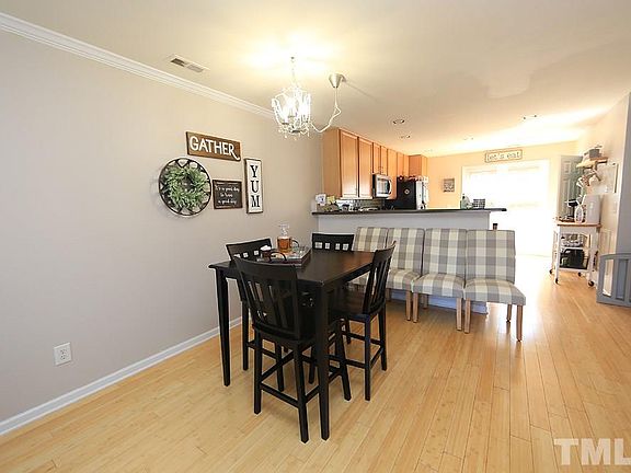 FANTASTIC location in Brier Creek moments to Hwy 70, I-540, RTP & the airport! Home features hardwood flooring throughout including the living, dining and kitchen areas and a first floor bed/office with access to a full bath. Spacious kitchen with center island and stainless steel appliances opens to the upper level deck and large living room with a corner fireplace. Enjoy low maintenance townhome living, community pool plus a 1 car garage for extra storage!