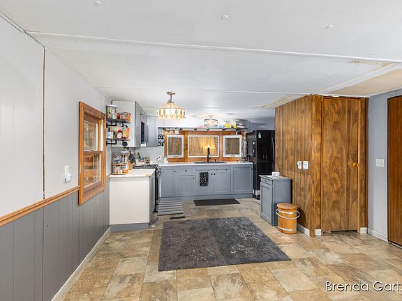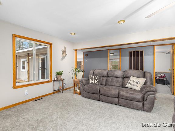 POLP and subject to final township approval of splits.-This property offers wooded privacy, on 5 ACRES. The home is a manufactured with a 14 x 20 Family room addition on it & an attached 3 season 'drop room' attached to a large porch. There are 3 bedrooms, a bathroom and a laundry area to accommodate washer and dryer. The dining area and kitchen are open to a smaller living room offers sliders to a wonderful oversized deck perfect for enjoying the wildlife. There is also a custom patio and fire pit for those quiet evenings. The garage is 2 plus stall with work area, a woodstove for heat. A door opens to another room which could be a game room, young adults living, craft room or endless ideas. There is a metal covered equipment shelter with a cement floor. A 2 yr new furnace, New well Nov 2025