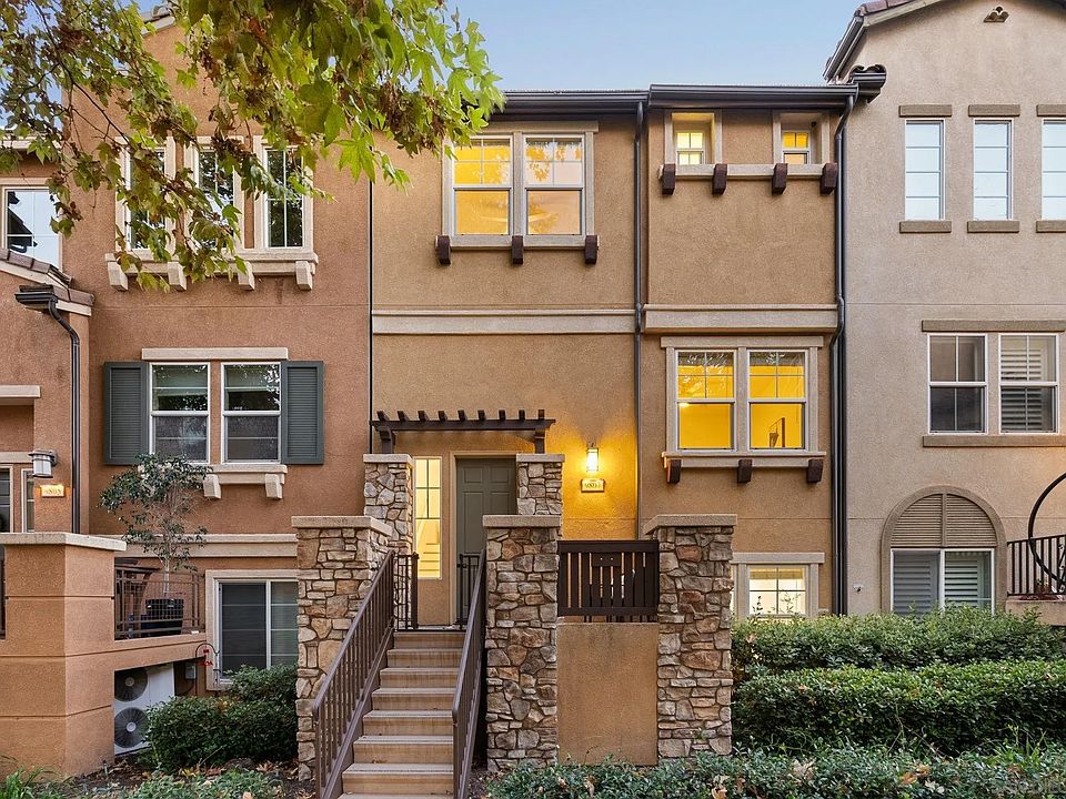 Perched off the greenbelt of the coveted Riverwalk Community, sits this meticulously maintained 4 bedroom, 4 bath home. 9807 Old Tree Lane has undergone many upgrades, is turnkey and ready for the next homeowner. The home lives and feels like a single family home with no shared walls, a laundry room, front patio w/ trex decking, and direct garage access. If you’re a fan of modern aesthetic, this redesigned kitchen will be sure to impress you! Timeless details throughout such as the globe pendant lights, new appliances, a waterfall island edge, new sink, and new sleek white and gray quartz countertops that are complemented by the new white cabinets. A large island like this becomes the hub of the home integrating conversations from the dining and living room. New, wide plank vinyl flooring beautifully enhances the high ceilings making the rooms feel even more spacious. Built in 2008, the home has since added updated hard surface flooring, a redesigned and updated kitchen, updated HVAC and water heater. You'll also find a balcony off the dining room, tile bathroom flooring, central AC, Nest thermostat, and plenty of storage. The layout of the home offers many options with dual primary bedrooms on opposite floors of the home. The downstairs primary suite can be utilized for guests, roommates, or multi-generational families, or used as a bonus room. The Riverwalk community features a playground, community pool and spa and a stone's throw to the YMCA, Rio Seco K-8 school, and the Santee Sportsplex. Close to shopping, dining, and freeway access. Call for more info!