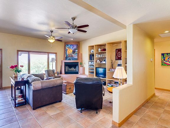 Gorgeous single story, 4 bedroom southwestern home on 4+ acres of beautiful land in quiet Vail, AZ. Enjoy the serenity of wide open spaces & breathtaking mountain views all within easy reach of metropolitan conveniences. Inside is bright & very well maintained. Perfect for entertaining, the open floorplan offers a spacious living area featuring pristine tile, a charming fireplace & large windows allowing for an abundance of natural light. Eat in kitchen presents ss appliances, white cabinetry, granite countertops & a sunny bay window dining nook. Master ensuite with dual sinks & separate tub and shower. Sprawling backyard is complete w/ a covered patio, ideal for savoring the spectacular views. NO HOA! This gem will impress!