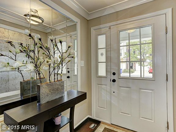 Walking distance to schools! This luxurious brick-front town house features gleaming HDWD FLRS, 9+ ceilings, elegant moldings, lg decorative mirrors & a bright open-concept layout w/ a cozy FP in your FR. Gourmet KIT boasts SS APPLS, oversized island & granite counters. Retreat to your UL MBD w/ dual closets & spa-like MBA. The LL rec rm offers access to the patio. Former Miller&Smith model home.