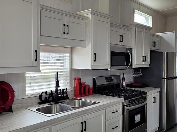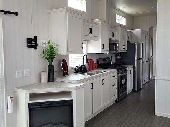 The perfect Airbnb getaway or vacation home! Welcome to this charming mobile home located in a prestigious golf course community, offering the ideal blend of relaxation and recreation. This 2-bedroom home sleeps 6, with the second bedroom featuring bunk beds, and includes a primary suite with an ensuite bath for added comfort. The fully equipped kitchen boasts a central island, ample storage, and raised ceilings that enhance the open and airy feel. Outside, the spacious deck provides the perfect spot to unwind and take in the breathtaking views of the golf course. With its prime location, serene atmosphere, and luxurious amenities, this home is a hole-in-one for anyone seeking a peaceful retreat or seasonal rental income. Don't miss the chance to experience golf course living at its finest-schedule a showing today and embrace a life of leisure and luxury!
