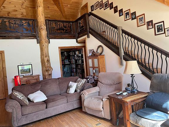 Log home on 2.94 acres, 10 minutes from Elkins, large deck, two stall garage, poured concert walls in basement, 24x24 foundation ready for a garage to be built, wooded & private, city water & city sewer, wood & propane heat with central air.