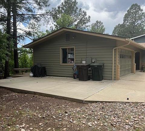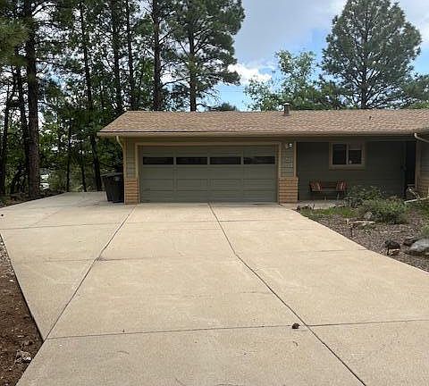 Charming 4 bedroom, 2 bath, 2 two car garage, RV parking pad, or auto area parking, wooded area of downtown Flagstaff single story, new roof 2024, living room with beautiful full wall fire place and bookshelves, beautiful view and forest view, new wood flooring, quartz kitchen counter tops, large 10 /12 x 19 back deck with built in seating and all weather planking. Refrig/washer &dryer included. Alarm system not activated, owner will not repair; no warranty for back deck, outdoor benches stay; great views and very private