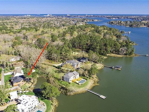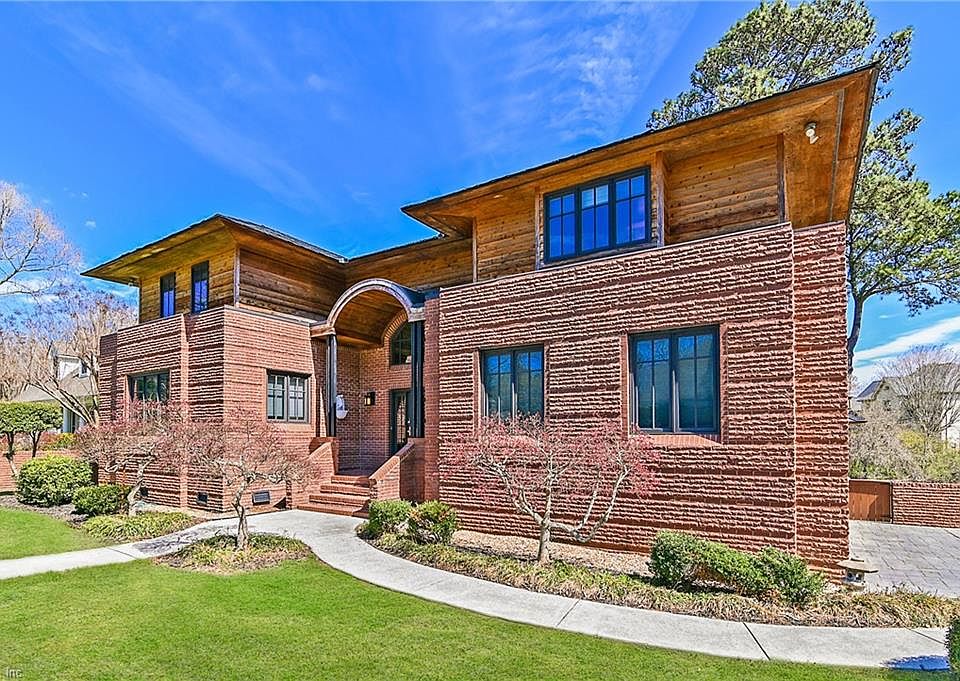 Inspired by Frank Lloyd Wright's design, this magnificent, modern 6 bdrm, 4 1/2 bath waterfront home is beautifully situated off the Eastern branch of the Lynnhaven River in highly desired Little Neck. Offering stunning architectural details & quality finishes, this wonderful home is in impeccable condition. Enjoy amazing water views & a peaceful nature setting. The bright and open kitchen features professional grade appliances, custom quality cabinets and beautiful granite counters. Offering soaring 12' ceilings, the tremendous great room features a double sided fireplace, a wet bar & walls of windows overlooking the water. The inviting, spacious owner's suite offers a tray ceiling, 2 walk-in closets, a built-in coffee bar, an office, private porch and magnificent water views. Excellent value! Quality construction. Stately brick fencing, 2 driveways. Superb location close to jogging path, parks, swim club. Kingston Elementary!