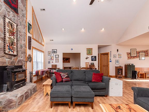 Fantastic country estate! Sitting on 6 acres, this modern style ranch home has 3 bedrooms and 2.5 baths with an enclosed bonus room that is currently being used as a home office. Take in the many features inside and out. The living room is stunning with a beautiful stone fireplace and cathedral ceilings. Throughout the house, there are lots of windows, wood trim, and storage. The kitchen offers a big pantry, ceramic tile counters, and stainless-steel appliances. The large primary bedroom has a huge closet and a beautiful primary bathroom with a glass block shower. Enjoy the privacy of your large back patio, with the backyard featuring an outdoor pizza oven, and there is plenty of room for storage and projects with the 3-car detached garage, plus an additional 2-car garage. The property has a 30’x60’ greenhouse, a newly constructed front chimney made of West Virginia river rock, a small creek in the woods, fruit trees, blackberry bushes, and a ramp patch. This property has operated as a vegetable farm and has fully fenced front and back yards. Priced to sell, this property won’t last long!