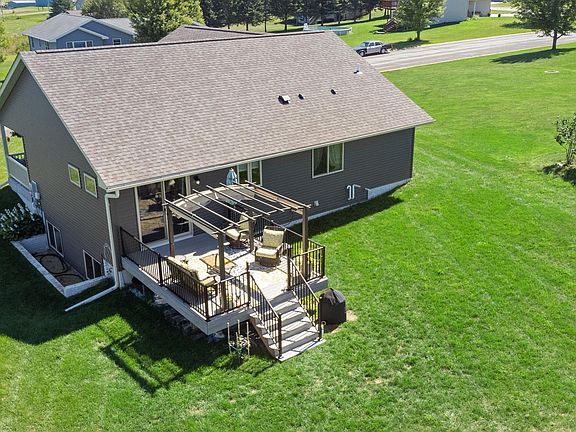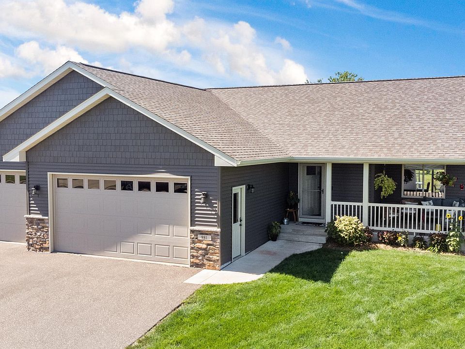 This 2018 rambler in Southgate community of Ellsworth WI is ready for it's next owner! Offering 4 beds and 3 baths this immaculate home features high-end finishes, custom Crestwood cabinets, large center island, oversized front porch, vaulted ceilings, paneled doors and consistent, stunning woodwork throughout. You will love the open concept main living space that steps out to a maintenance free back deck overlooking the oversized lot. A mudroom off of the 3 car garage and main floor laundry wrap up the main floor. The family room in the lower level boasts tall ceilings, a full renovated bath with Jack and Jill sink and soaker tub. Find 2 more bedrooms in the basement including a 2nd master bed with walk-in closet. The back yard shed is perfect for storing all of your garden tools and lawn mower. This stunning home doesn't come around often, schedule your showing today!