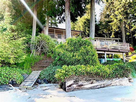 Rare and highly desirable no-bank, sandy West-facing waterfront with glorious views of the Olympic Mts. & Port Ludlow Bay with a sweet, updated cottage to live for! Calming, cozy 2-bdm home well maintained w/updated kitchen, new floors, carpets & fresh paint. Fabulous deck overlooking the water was made for sunsets, coffee & good conversations. Garage has a modern bonus room & a hobby room upstairs. Private yet close to golf, marina, trails & services.Tidelands included. No HOA. Simply stunning!