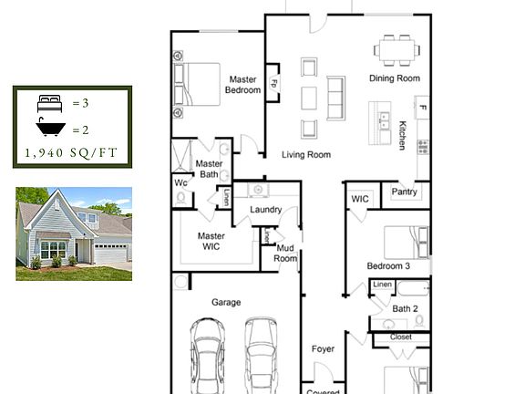 - Total interior livable area: 1,940 sqft